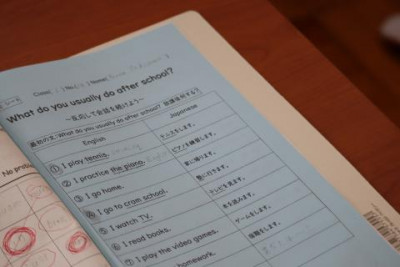 放課後何をするか?を英語でたずねた後に、会話を続ける練習をしていました。