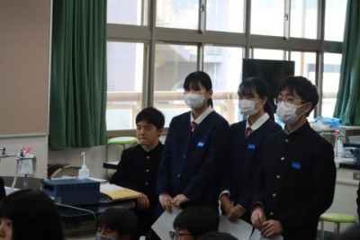 マイナス極の方だけリトマス紙が赤色に変化したのはなぜか、グループで意見を出し合い考えを深めていました。